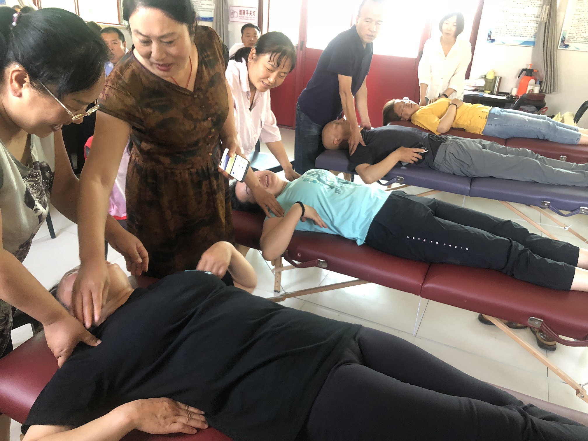 此次保健按摩師培訓,我校聘請了有多年按摩經(jīng)驗和豐富授課經(jīng)驗的按摩老師給學員講課。培訓過程中,采用理論和實操相結合的培訓形式。老師先將按摩理論知識教給學員,再將按摩流程演示給學員看,邊操作邊講解,再讓學員們動手實際操作,老師在一旁指導,及時糾正學員們不正確的按摩手法和流程。經(jīng)過7天的按摩培訓,學員們基本都掌握了頭部、面部、胸腹部、背部、腿部等處的按摩手法和按摩流程。